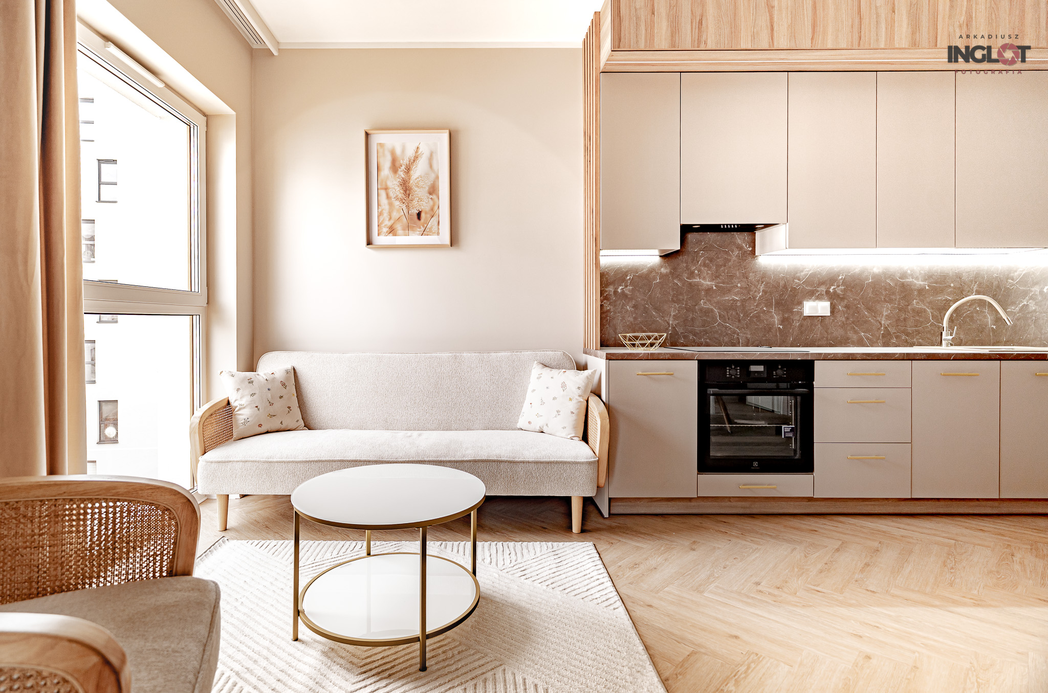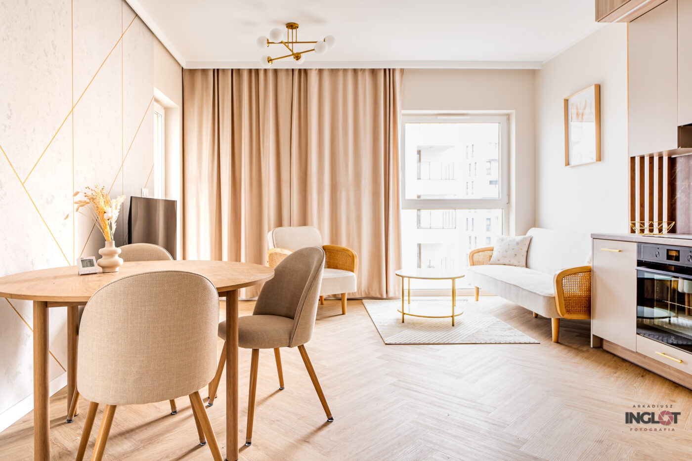 kiedy przekraczam próg mieszkania i od razu czuję jego harmonię i spokój. Tak było w tym przypadku – jedno spojrzenie na to wnętrze i wiedziałem, że czeka mnie niezwykła sesja fotograficzna. To mieszkanie z jedną sypialnią i otwartym aneksem kuchennym jest kwintesencją stylu boho – pełne ciepłych barw, eleganckich materiałów i minimalistycznych detali, które razem tworzą prawdziwie magiczną atmosferę.