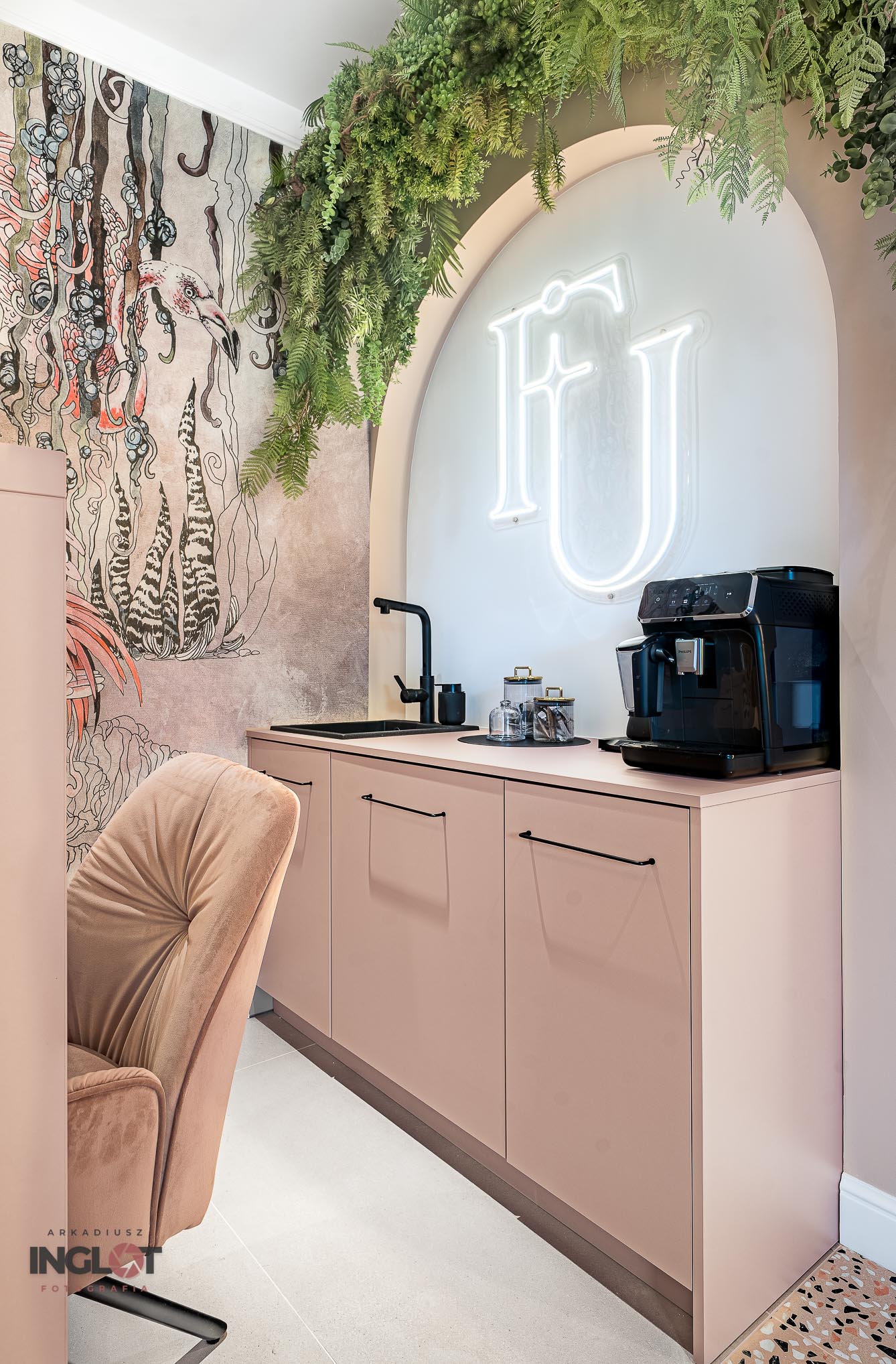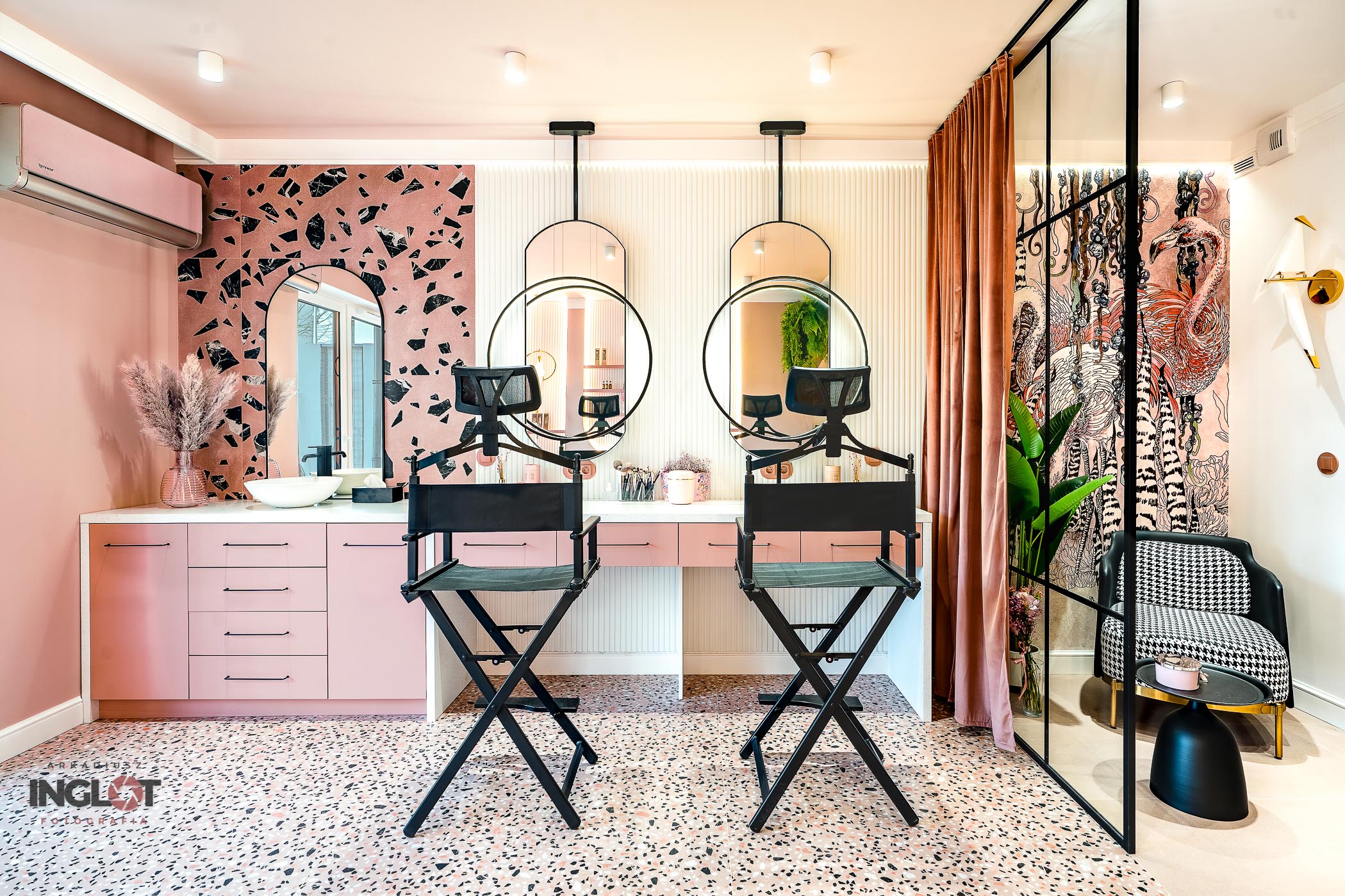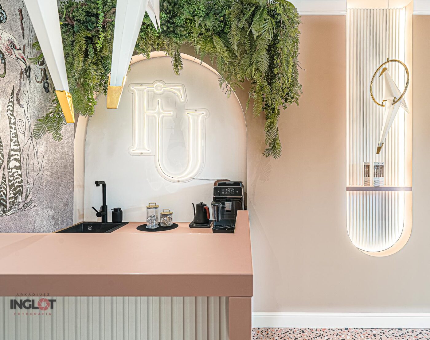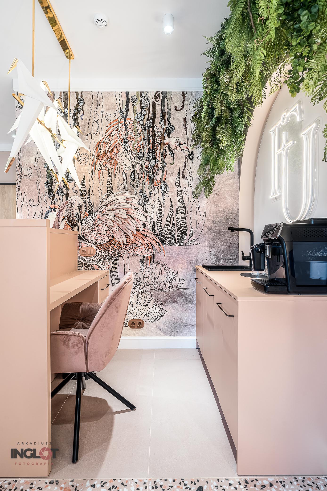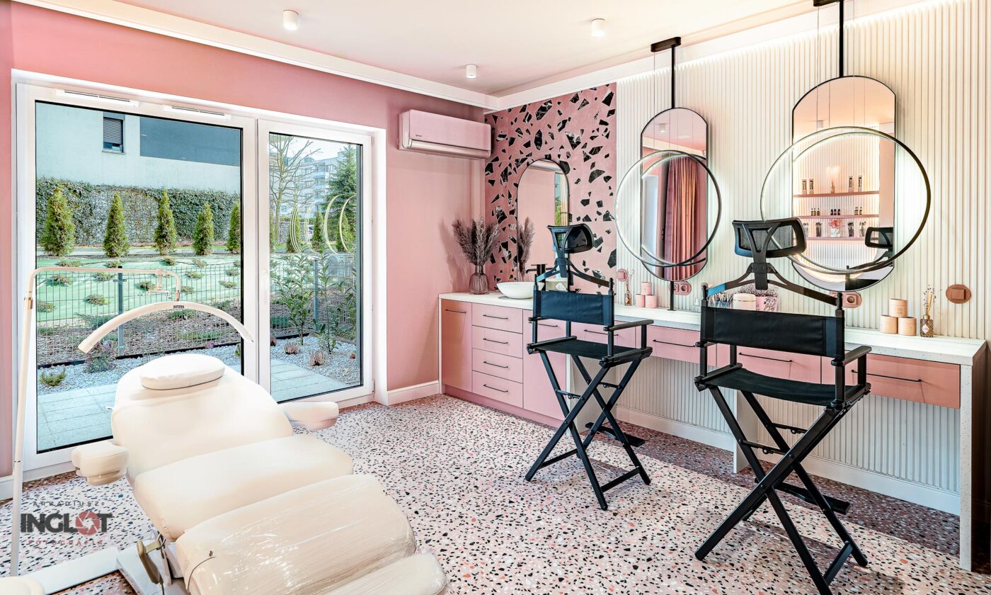 Miałem okazję wykonać sesję fotograficzną salonu kosmetycznego w Katowicach. Utrzymany w wyjątkowych odcieniach pudrowego różu wraz z piękną fototapetą przedstawiającą flamingi.