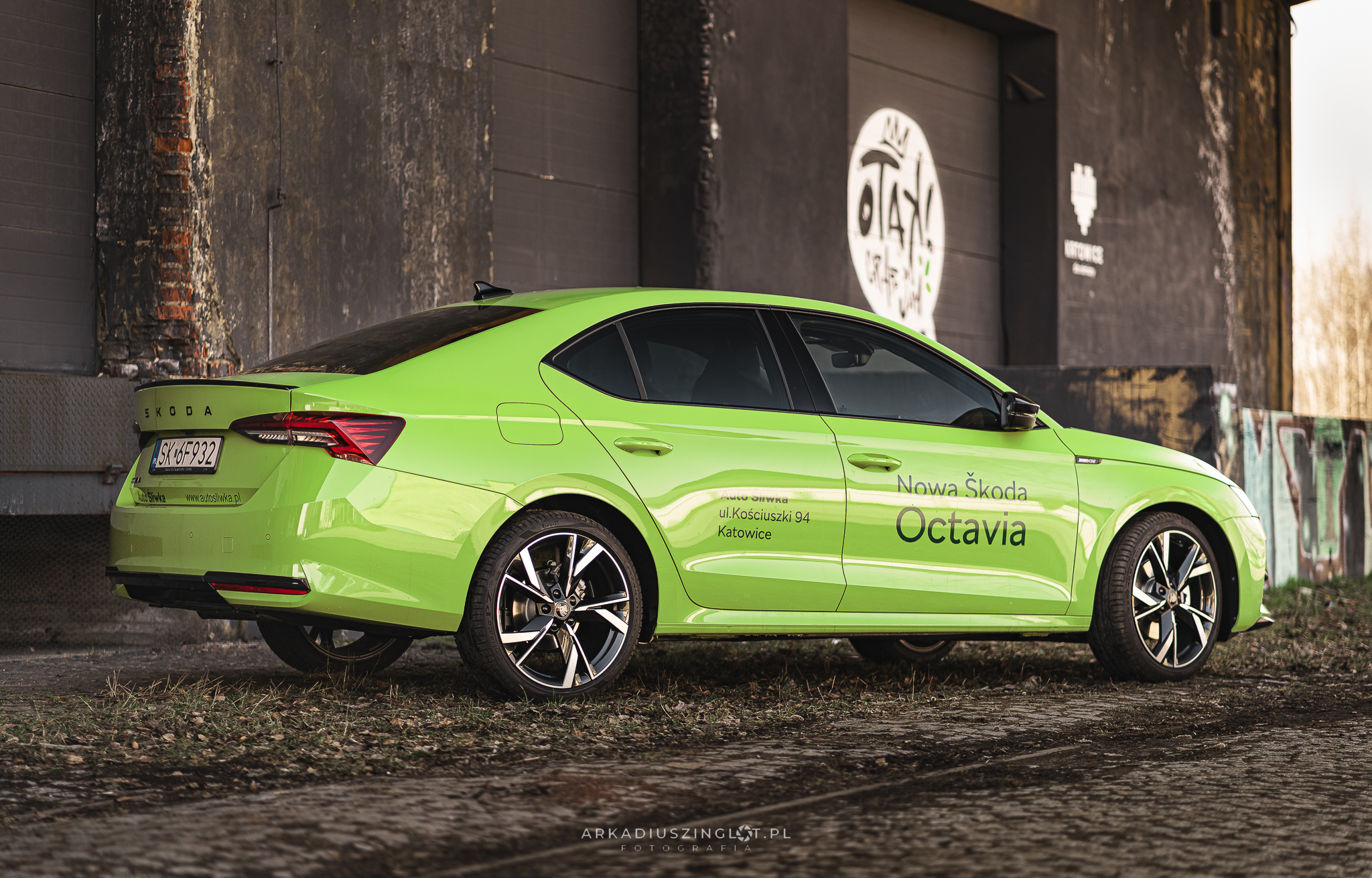 Skoda Octavia Mamba na sesji motoryzacyjnej w industrialnej przestrzeni Załęża