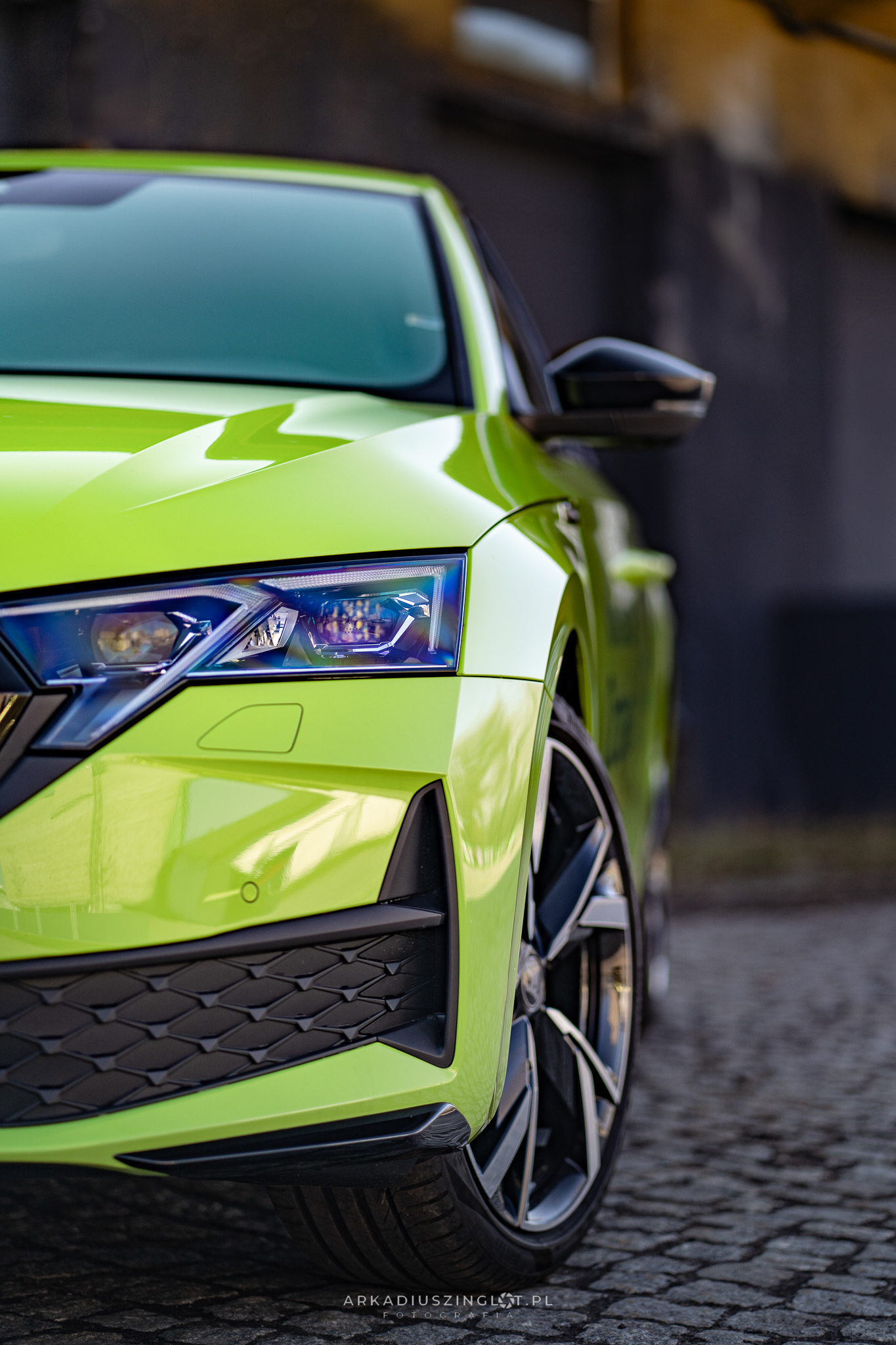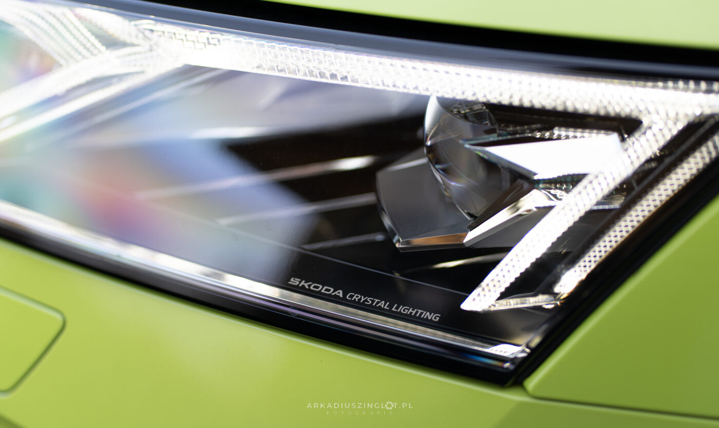 Przedni reflektor Skoda Octavia Mamba – detal na sesji w Katowicach