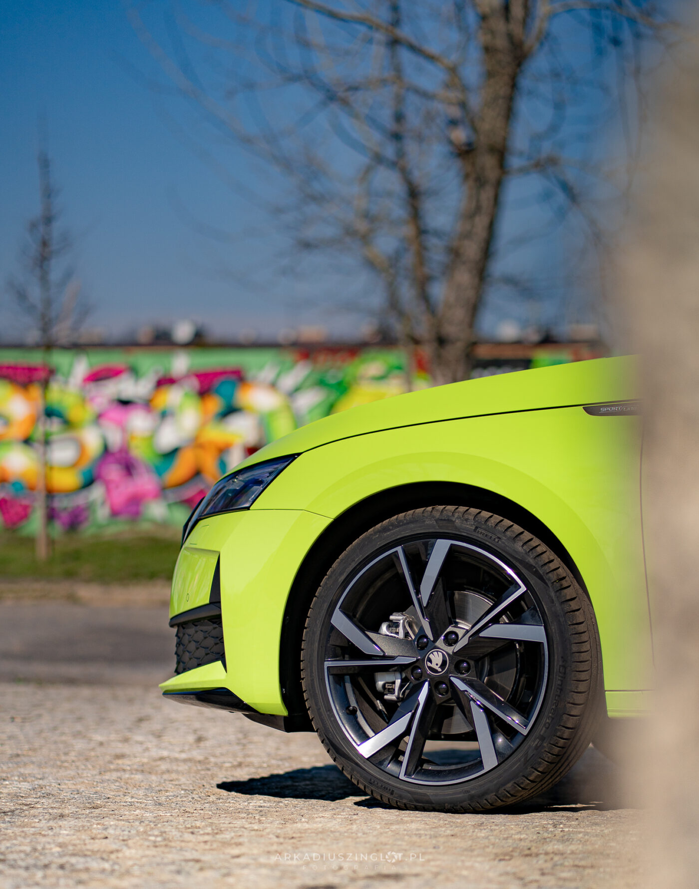 Samochód na tle graffiti – sesja Skoda Octavia Mamba